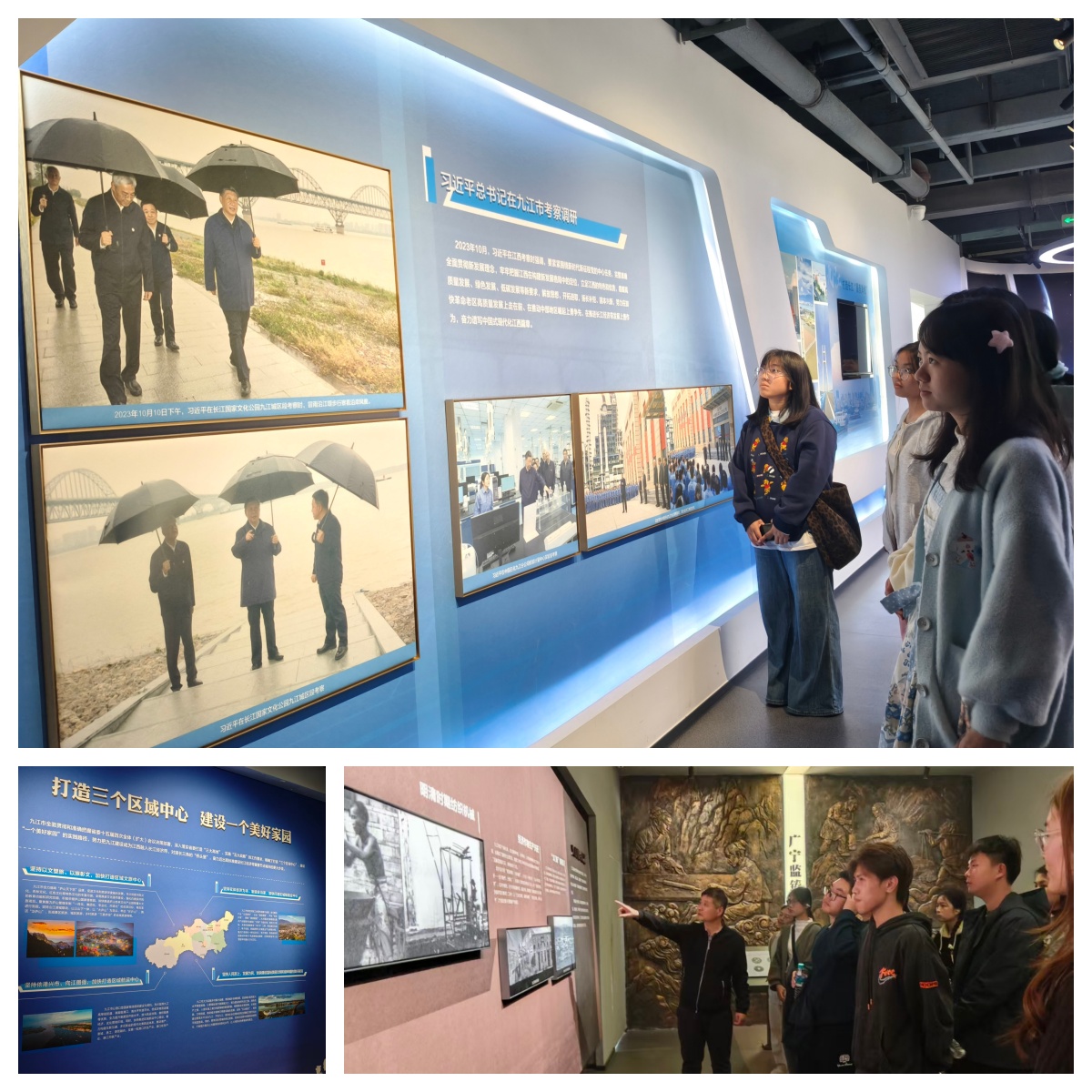 参观结束后,学生们纷纷畅谈感悟。学生何嘉乐感慨道:“漫步锈迹斑斑的老车间,触摸千年工业脉搏,从铜矿开采工具到现代化智能装备,历史与科技交织,匠人精神薪火相传,让我对国家工业发展、强国建设有了更鲜活的理解。”游祉涵表示:“红砖旧厂房承载着奋斗记忆,从商朝到新时代工业崛起,展品诉说的不仅是九江的发展史,更是中国人民自强不息的拼搏史,让我对‘四个自信’愈发坚定。” 大家一致认为,此次活动将课堂理论与实践体验深度融合,不仅深化了对新中国史的认知,更激发了青春担当,未来将以更昂扬的姿态投身民族复兴伟业,让中国特色社会主义道路自信、理论自信、制度自信、文化自信成为成长路上的坚定信念。