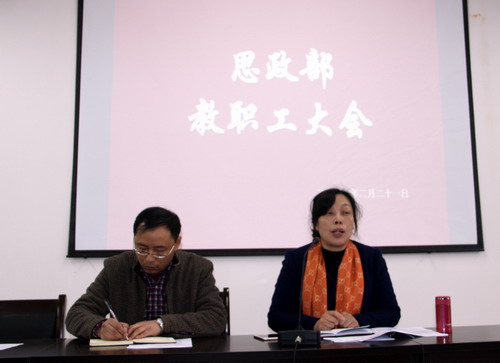 2月21日下午,思政部主任汪力平在香远楼212室主持召开了新学期工作会议,思政部全体教职工参加了会议。
