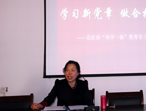 为了贯彻落实学校党委《关于开展“两学一做”党课宣讲活动的通知》文件精神,4月21日下午,思政部在香远楼209室进行了《学习新党章 做合格党员》的主题讲座,思政部全体党员教师参加了讲座。讲座由思政部主任、党总支书记汪力平主持。