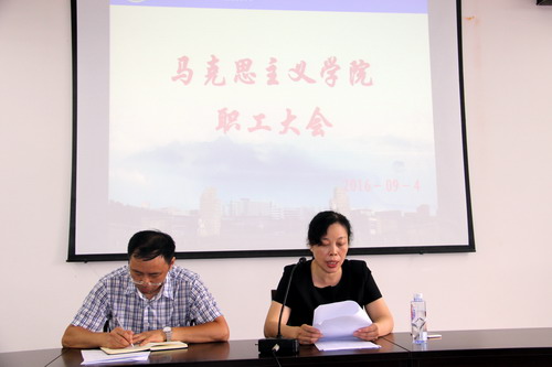 为了切实贯彻落实新学期校中层干部会议精神,部署新学期各项工作,9月4日上午,马克思主义学院在香远楼212会议室召开教职工大会。马克思主义学院院长汪力平、副院长郑小东及全体教职工参加了大会,会议由郑小东主持。
