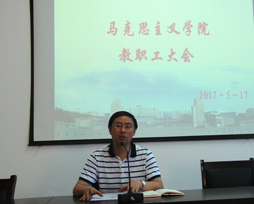 会上,郑副院长首先传达了 “高校思想政治理论课教学质量年”的相关精神。郑副院长指出,为深入贯彻落实全国高校思想政治工作会议精神,打一场提高高校思政课质量和水平的攻坚战,切实增强大学生对思政课的获得感,教育部制定了《2017年高校思想政治理论课教学质量年专项工作总体方案》,将2017年定为“高校思想政治理论课教学质量年”,突出三“大”,即大调研、大提升、大格局,坚持调动师生、凝聚合力、集中攻坚、增强获得感,满足青年学生成长发展需求和期待。《总体方案》的制定,为全国各高校打赢思政课教学质量年专项工作攻坚战提供了基本遵循和指针。