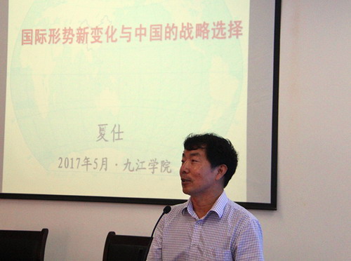 夏仕教授做了题为《国际形势新变化与中国的战略选择》的报告,夏教授从分析2016年以来国际形势新变化出发,重点讲述了当前世界力量对比格局发生的新变化,包括大国关系和朝鲜半岛等地的热点问题;全球化进入了一个相对“间歇期”以及世界政治思潮发生新变化。夏教授认为中国应有自己的战略选择:第一,中国要妥善处理好大国关系,以全方位合作破解地缘政治难题;第二,努力加强“一带一路”建设,推进新型全球化发展;第三,中国当前的任务是要积极实行战略思维的转变。