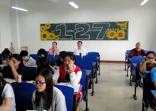 上午11点,赵书记一行来到立信楼304教室,随机听取了马克思主义学院龚连英老师为会计A1615/A1616班讲授的《中国近代史纲要》课程。课后,赵书记与龚老师进行了交流,肯定了优点,并就如何更好地上好这门课提出了有益的建议。