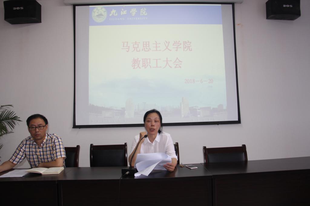 6月20日下午,马克思主义学院组织召开了期末工作会,就期末期初工作及针对预评估专家反馈意见进行整改工作进行了安排部署。会议由院长汪力平主持,学院全体教职工参加了会议。
