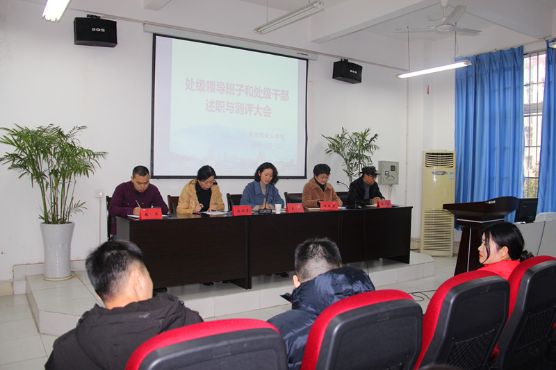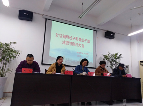 12月25日,马克思主义学院在香远楼212室召开2019年度处级领导班子及处级干部述职测评会。组织人事部副部长夏英、干部人才科副科长户晗出席了会议。会议由夏英副部长主持,马克思主义学院领导班子和全体教职工参加了述职测评会议。