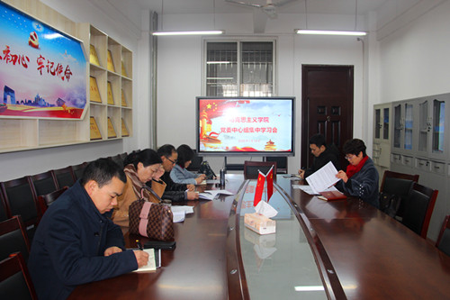 1月14日下午,马克思主义学院在香远楼2052会议室召开党委班子集中学习会,集中学习习近平总书记在“不忘初心、牢记使命”主题教育总结大会上的讲话及卢永根同志的先进事迹,会议由党委书记汤红莲主持。