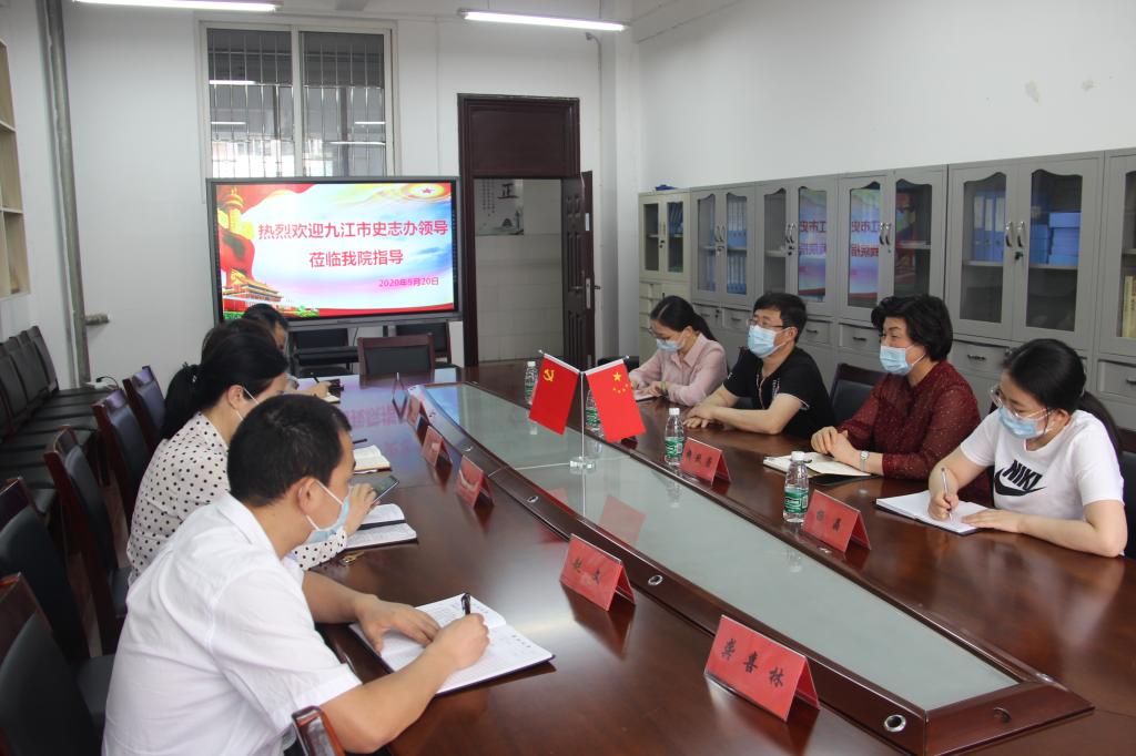 汤红莲书记首先代表学院对市史志办领导一行表示热烈欢迎,接着汪力平院长从学院的师资队伍、教学特色等方面介绍了学院的基本情况。然后双方就党史的研究、九江红色文化的研究、红色文化进课堂、地域特色进课堂等合作内容与史志办领导进行了深入的交流。汪院长表示,希望市史志办领导能着眼于思政课教学和马克思主义学科研究的角度,为学院下一步发展提出更多更好的合作建议。汤红莲书记对之前访问市史志办情况进行了简要回顾,她说,学院一直十分重视九江地方红色文化研究,九江市史志办之行是学院“红色研学”系列活动中的一项重要内容。今天的再次交流,既是史志办的一次回访,也是双方的进一步深化交流,希望能继续围绕九江地方党史、九江地方红色文化,在研究内容、研究方式等方面进行更深入更广泛的合作。