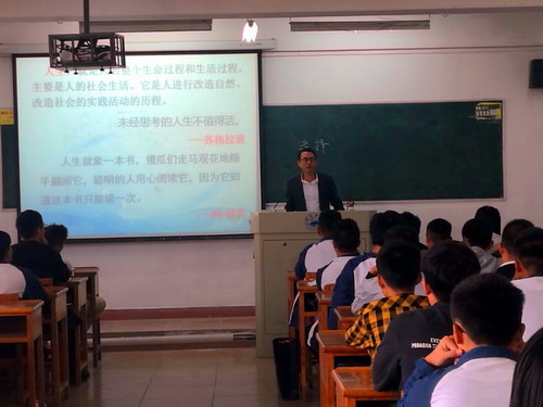 课堂上,刘老师通过理论阐释、故事启发和典型案例,深入浅出地讲解了“人生观与世界观”有关内容。刘校长认真听取了授课内容,仔细观察学生课堂表现并进行了详细记录。