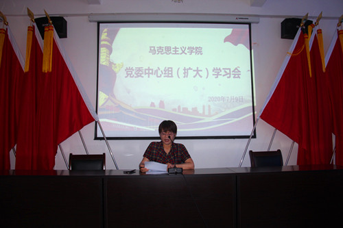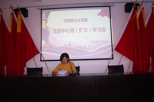 7月9日上午,马克思主义学院在香远楼212会议室召开七月份党委中心组(扩大)学习会,学院党委委员、各科室负责人及部分教师代表参加了会议,会议由学院党委书记汤红莲主持。