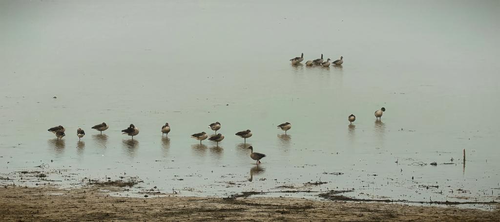 在工作人员引导下,党员教师们先后考察了狮子山观鸟点与望湖亭区域,实地感受鄱阳湖生态保护与候鸟保育成果,详细了解吴城小镇在湿地保护、候鸟救助以及生态与经济融合发展方面的创新实践与突出成效。