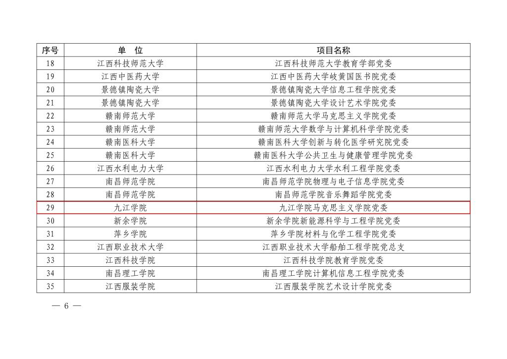 日前,中共江西省委教育工委正式印发《关于公布全省第二批新时代高校党建示范创建和质量创优培育创建单位名单的通知》,九江学院马克思主义学院成功入选“全省党建工作标杆院系”培育创建单位。此次入选既体现了省委教育工委对学院党建工作的高度肯定,也集中展现了学院在推动党建与育人深度融合方面的扎实探索和阶段性成果。