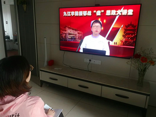 马克思主义基本原理教研室秦芹:今天,我院号召全体教师观看由九江学院党委宣传部和附属医院负责组织实施的《九江学院援鄂战“疫”思政大讲堂》的网络直播。我教研室教师准时收看了这次《战“疫”思政大讲堂》,通过认真学习,令我们受益匪浅,刻骨铭心。