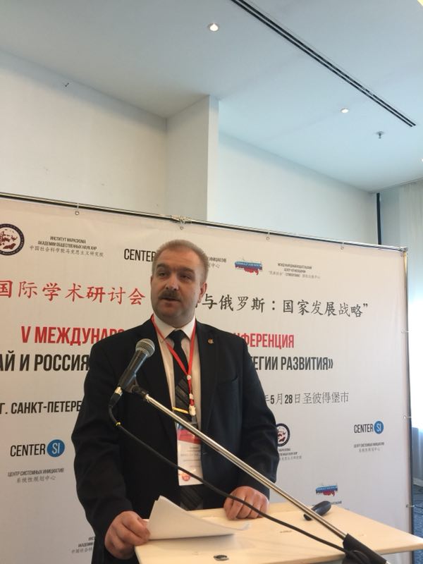 5月28日,“第五届中国、俄罗斯、中东欧国家发展战略论坛”系列国际研讨会来到了俄罗斯圣彼得堡,这是本次论坛的第四场,也是最后一场。本场研讨会由中国社会科学马克思主义研究院与俄罗斯制度创新中心、“民族社会”国际出版社联合主办,会议的主题为“中国与俄罗斯 国家发展战略”。来自俄罗斯圣彼得堡的学者与中国的学者近90人参加会议。
