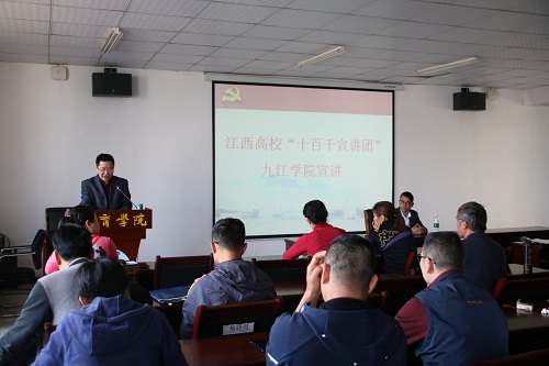 5月8日下午,体育学院在八里湖校区综合楼621会议室举行党委中心组(扩大)学习会暨支部主题党日活动,邀请我校“十百千宣讲团”成员、马克思主义学院教师刘红雨作江西高校“十百千宣讲团”专题宣讲活动。学院党政班子成员、科室负责人、全院师生党员和入党积极分子参加,宣讲会由学院党委书记付和忠主持。