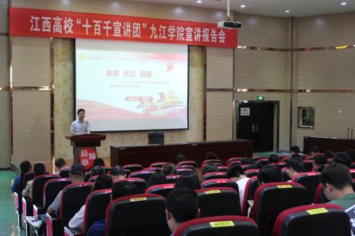 为深入贯彻落实习近平总书记在学校思想政治理论课教师座谈会上的重要讲话精神,根据江西省委教育工委、江西省教育厅联合下发的《关于组织开展全省高校“十百千宣讲团”宣讲活动的通知》的相关要求,5月22日下午,外国语学院邀请了九江学院思政工作骨干宣讲成员、马克思主义学院黄群副教授作 “自信 自立 自强——学习习近平在学校思想政治理论课教师座谈会讲话精神”的主题宣讲活动。外国语学院党政领导班子及师生代表参加了宣讲活动。宣讲活动由外国语学院党委副书记彭晓主持。